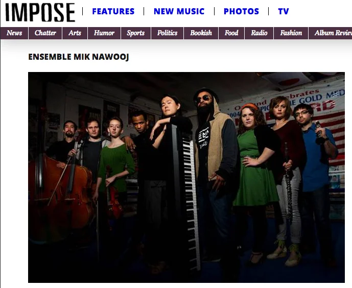 June 17, 2016 christopher nicholas Impose Magazine premieres Gin & Juice video! June 17, 2016 christopher nicholas "Ensemble Mik Nawooj has no time for your modernist conventions. Ensemble Mik Nawooj is the new wine too strong for the old glass bottles."-Impose Magazine christopher nicholas