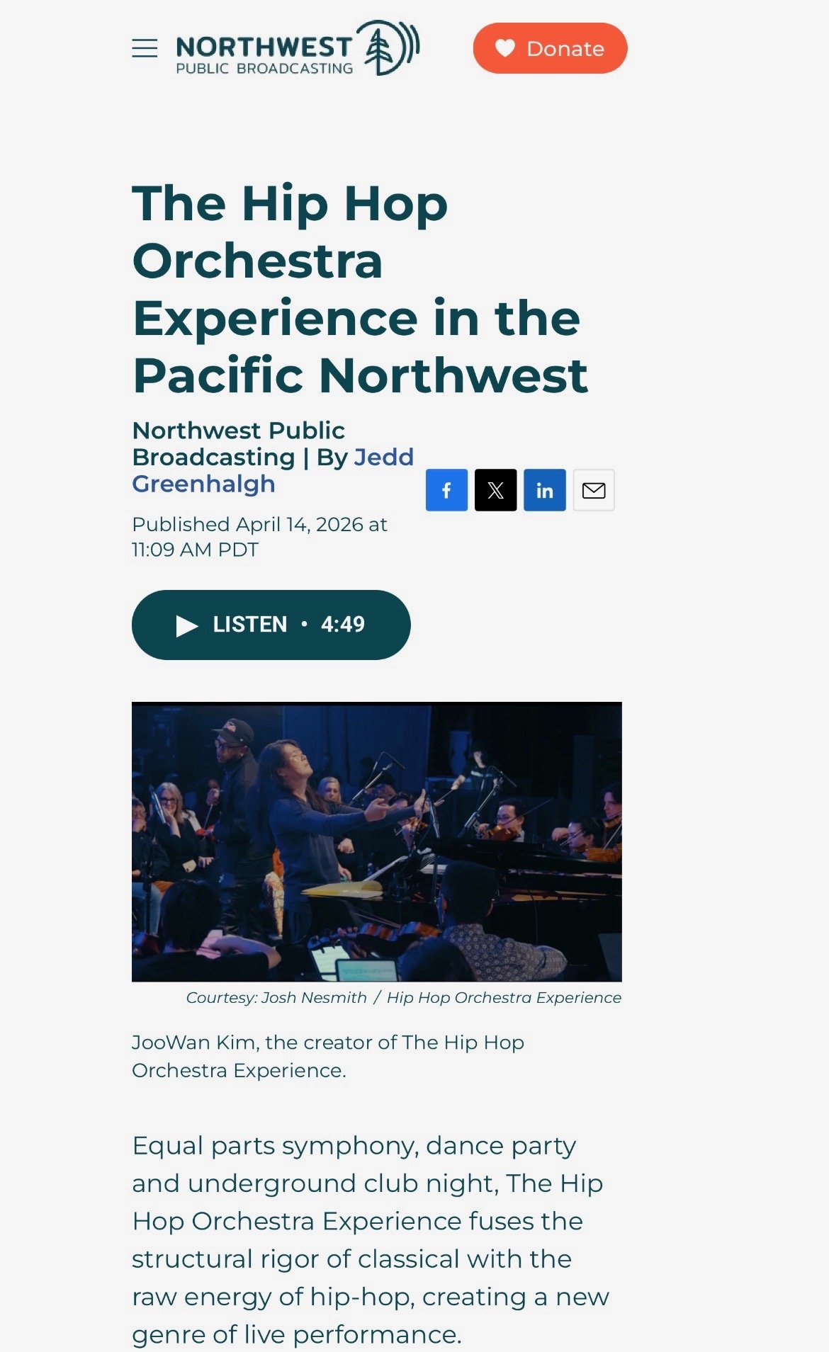 Our interview will air NWPB's broadcast of NPR's All Things Considered and Morning Edition. Today, listen in at 4:44pm on NWPB, and tomorrow morning at 6:45am and 8:45am.